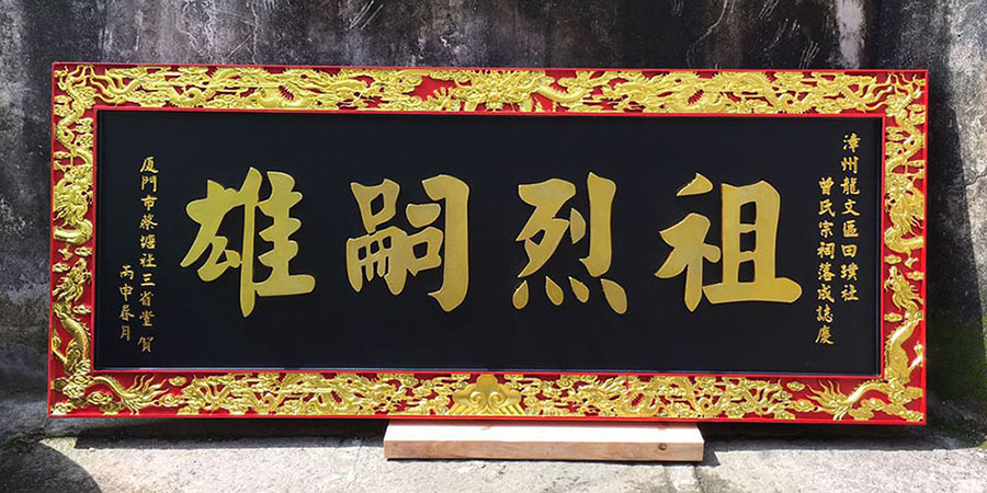 【巾帼英杰】宗祠牌匾,九龙浮雕边框,阳刻。 |
